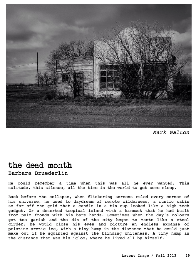 One of our goals in creating this zine was to pair writing and photography. That is why we were was so happy upon reading Barbara Bruederlin’s short story and then receiving Mark Walton’s submission. We knew immediately they would compliment each other.